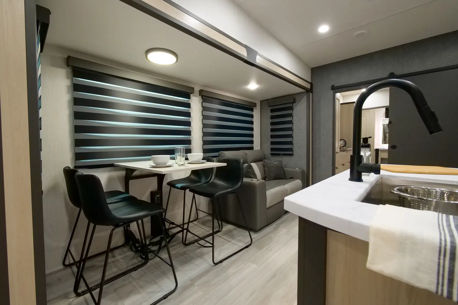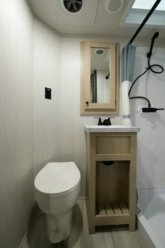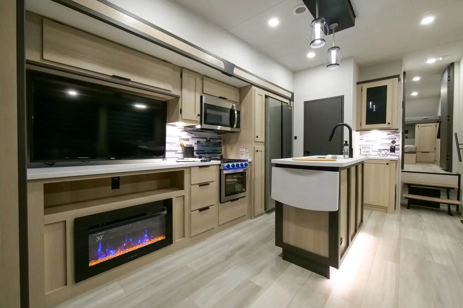 The Wildcat Fifth Wheels 35FUN floorplan has two entries and three slide outs. Exterior features include: fiberglass exterior and 13' & 12' awning. Interiors features include: bunk beds, kitchen island, rear bathroom and two full bathrooms.
