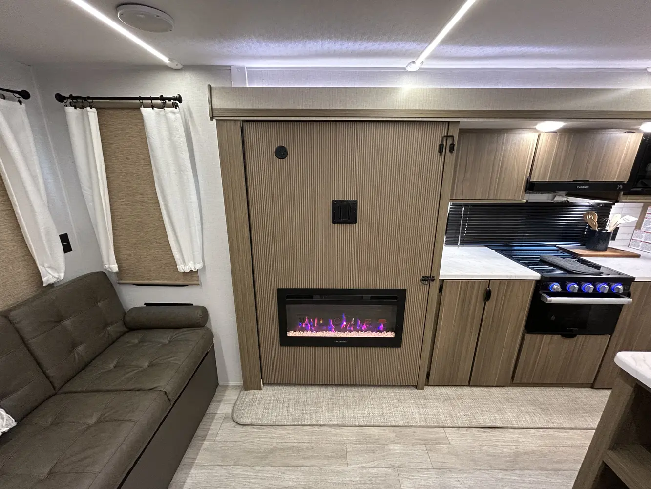 The Wildwood 27RE gives you a spacious living room area thanks to two slideouts. The island kitchen is well equipped with a stove top, oven, residential refrigerator, and pantry. The bathroom features a walk-in shower, plus a skylight and linen cabinet, while the front bedroom includes a walk-in closet.