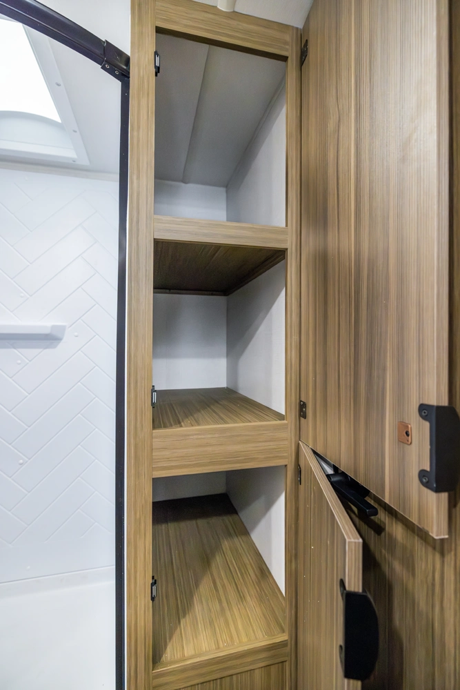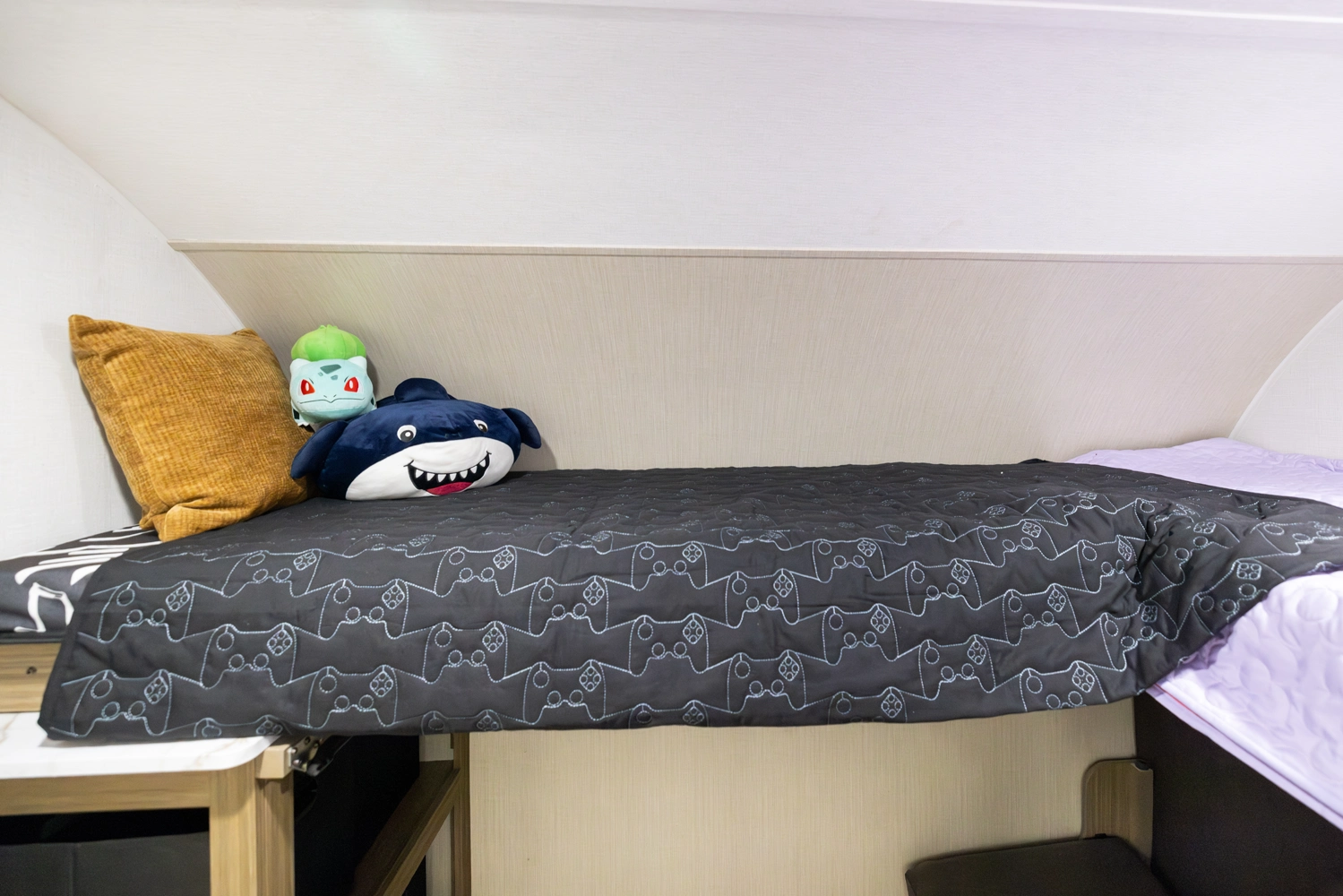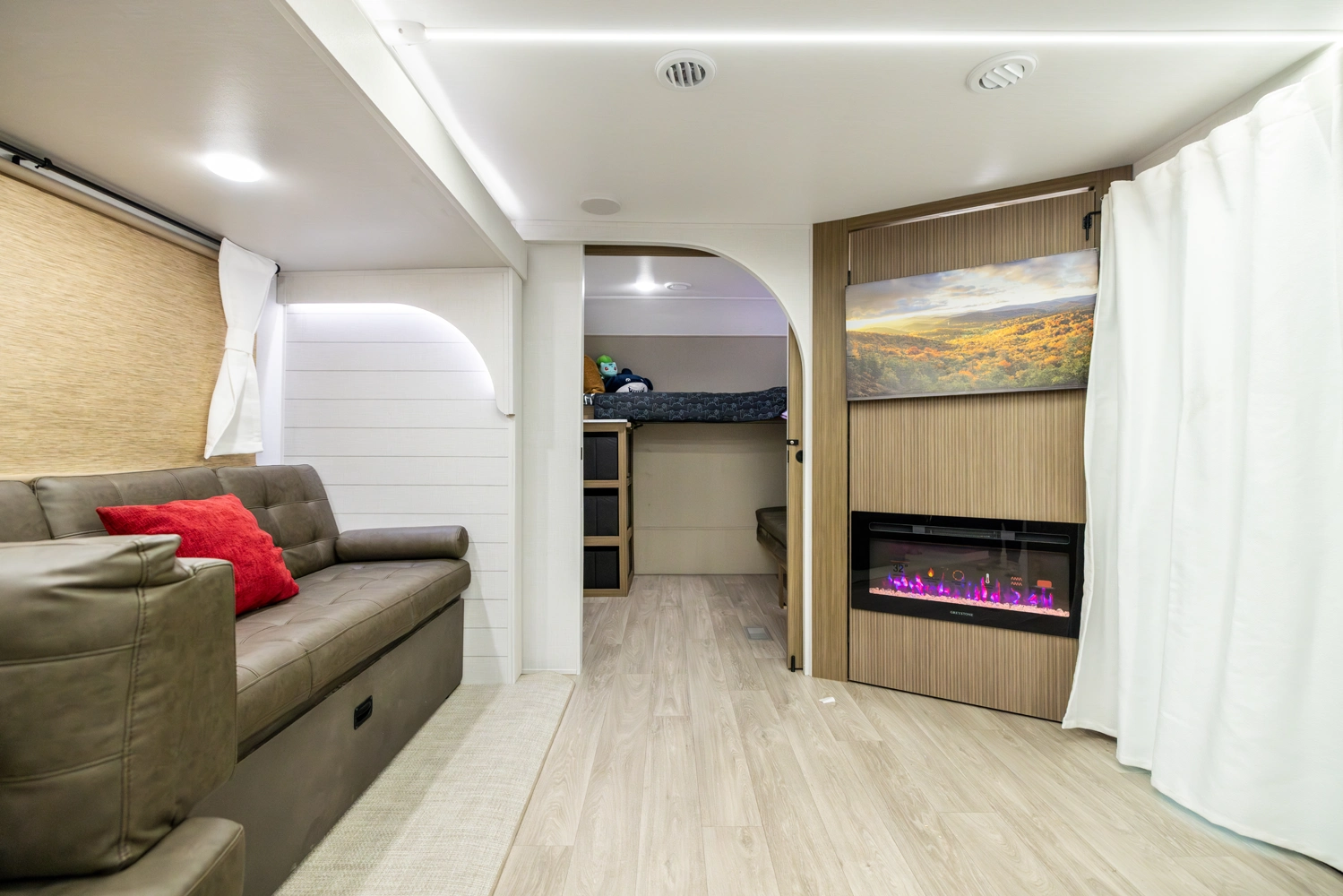 The 36VBDS is a unique, versatile bunkhouse that offers ample sleeping options so you can bring everyone camping! The front bedroom offers both the Versa-Queen and Versa-bunks, while the rear bedroom provides a queen bed, dresser, and closet. The living area features the fantastic Versa-Lounge with panoramic windows for great campsite views. Do not forget about the Stow N Go Storage conveniently below the Versa-Lounge.