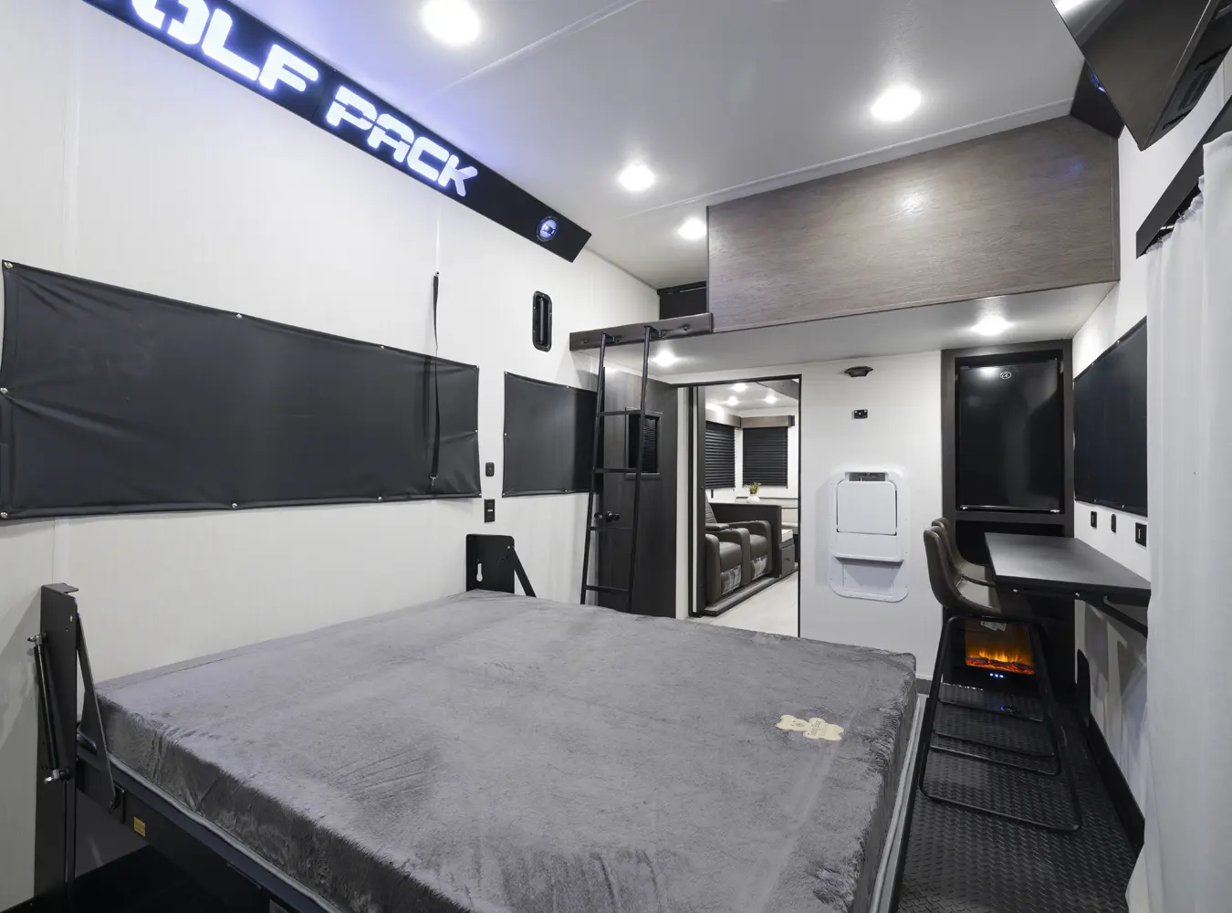 In fact, approximately half of Wolf Pack customers are bunkhouse buyers looking for more sleeping room and versatility in their unit. The Wolf Pack is not always a toy hauler or a bunkhouse. It is whatever you need it to be for the trip you are about to take. If your family likes to take a golf cart, motorcycles, ATV’s, bicycles, kayak’s, coolers, grills, firewood and all the other camping staples, but doesn’t like to take the second vehicle to get it there, look no further than the Wolf Pack. Versatility is the name of the game!