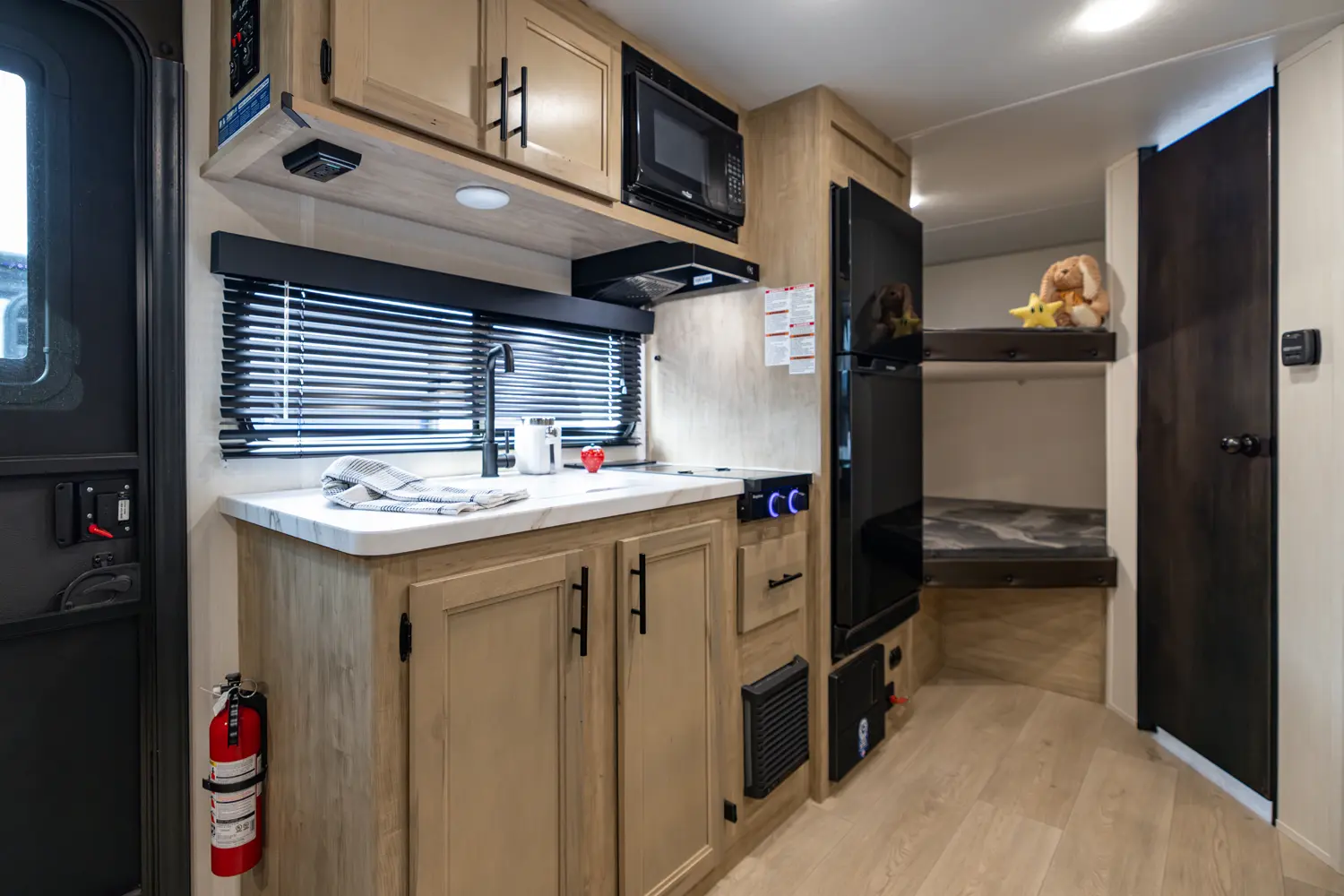 • Blackout Glass, Safety Slam, Friction Hinge Entry Door with Window and Shade Prep (N/A on LP models)