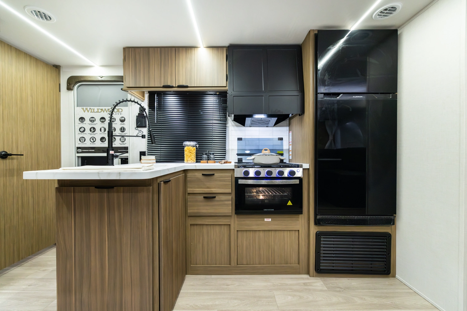 • Dimmable Interior LED “Blade Lighting” (Living Area)